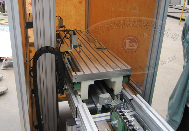 高鐵門自動裝配流水線技術(shù)優(yōu)勢:針對高鐵門驅(qū)動部分,尺寸長短不一且很沉重,不好定位,設(shè)計一套能自動流動工裝小車,小車采用一組帶手動離合驅(qū)動小車,一組被動小車,且產(chǎn)品放到主驅(qū)動小車,通過一個升降壓板壓緊產(chǎn)品的底板(可適應(yīng)2-6mm的底板),另一組被動小車依產(chǎn)品長度調(diào)到合適位置,由升降壓板壓緊定位好進行產(chǎn)品組裝,組裝一部分后,由輸送帶送至下一站,進行下一道工藝組裝,一共進行9道工序組裝后,產(chǎn)品取下,工裝小車由提升機送至下層返回輸送帶,從另一頭起點提升循環(huán)使用。