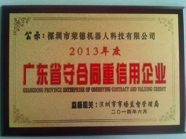 在此之際,非常感謝廣大客戶朋友對公司的認可和滿意,只有客戶對公司的認可,這樣公司合同才能夠嚴格履行,最終才能獲得該榮譽稱號。全體榮德人將會以此為契機,將產(chǎn)品質(zhì)量和服務(wù)做到行業(yè)內(nèi)一流水平,滿足并不斷超越客戶需求。同時也請客戶放心選購我司的噴涂機器人、自動噴涂設(shè)備、自動化生產(chǎn)線,獲得“廣東省名牌產(chǎn)品”的“守重企業(yè)”值得您的信賴,我們將會以最優(yōu)質(zhì)的質(zhì)量回報客戶、回報社會,為深圳質(zhì)量的發(fā)展乃至全國質(zhì)量的發(fā)展貢獻自己的力量!