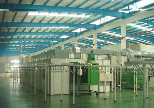 —電加熱式烘干、固化組合烘道;外形尺寸,18000×5600×4350mm(L×W×H);插板式拼裝結(jié)構(gòu),內(nèi)壁為滲鋁鋼板,外壁為冷軋鋼板,上送風上回風熱風循環(huán)方式。1座。—粉末回收裝置:8000立方米/小時風量,小旋風+濾芯回收。1套。