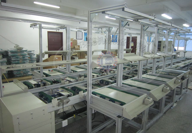 7)把工件放在工裝板上,啟動按鈕,工裝板隨流水線流到下一工序;