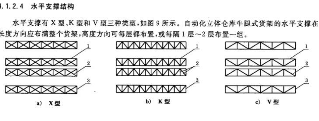垂直支撐有X型剛性、X型柔性和Z型剛性三種類型,自動化立體倉庫牛腿式貨架的垂直支撐在長度方向應(yīng)布滿整個貨架