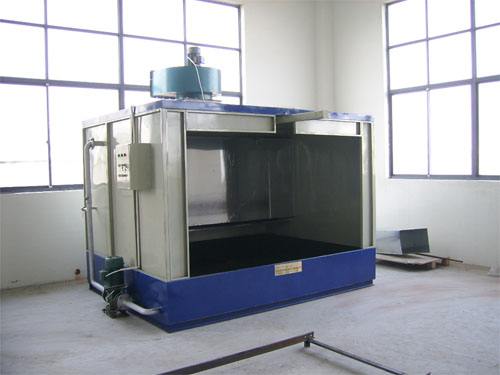 干式噴漆室有室體、排風(fēng)裝置和漆霧鋪集裝置等組成。室體一般是用鋼結(jié)構(gòu)支架,鋼壁板和玻璃墻板組合制成。小型的干式噴漆室可將小型排風(fēng)機(jī)直接放置在噴漆室頂部。大中型的應(yīng)將排風(fēng)機(jī)放置在室外,或室內(nèi)平臺上。漆霧處理裝置通過減慢流速和增加漆霧與折流板或過濾材料的接觸機(jī)會來捕集漆霧。